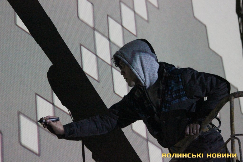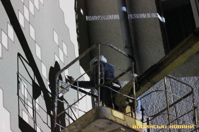 Робота над графіті триватиме аж до фестивалю. Підйомники для нанесення графіті надають ПрАТ «Луцький домобудівельний комбінат» та ЖКП №3.
