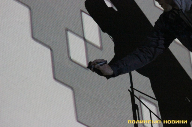 Одне з них буде створено на стіні будинку на вулиці Лесі Українки, 26 (поблизу Галереї мистецтв), де цього вечора спроектували зображення та нанесли контури малюнку. Інше графіті створять на стіні будинку №18 на вулиці Лесі Українки, третє зображення – на стіні Навчально-реабілітаційного центру. Малюнки відібрали під час конкурсу, що проводився у соцмережі, також радилися із головним архітектором міста. Досі є сумніви щодо того, яке саме зображення нанесуть на стіну НРЦ, тож найближчими днями ескізи покажуть старшокласникам, які навчаються у цьому закладі, які голосуванням визначать, який малюнок хочуть побачити на будівлі.