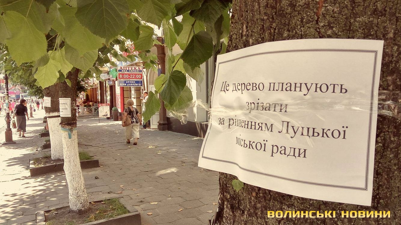 Аби привернути увагу лучан, активісти пов'язали траурні чорні стрічки на дерева, які, згідно з рішенням міської ради, планують зрізати. Окрім того, на місці уже свіжозрізаних дерев встановили символічні таблички, зокрема: "Дерево "Липа". Вік - 10-15 років. Знищено за рішенням Луцької міської ради".