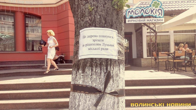 Відтак, сьогодні, 1 липня, небайдужі активісти і мешканці Луцька пов'язали на дерева, які планують зрізати, траурні стрічки та повісили символічні листівки, аби привернути увагу людей.