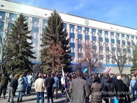 У цей же час у Луганську сепаратисти штурмом взяли СБУ, вибивши двері та вікна.