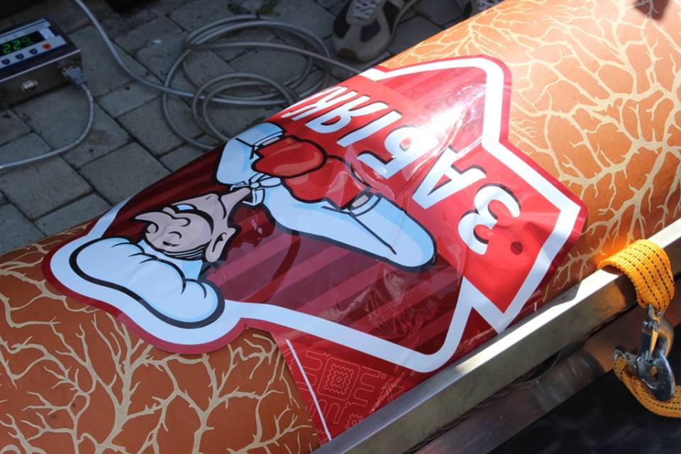 Рекордну ковбасу на огляд публіки виносили кілька чоловіків. Просто перед сценою її зважили: ковбаса вагою 229 кілограмів встановила рекорд і стала найважчою в Україні.