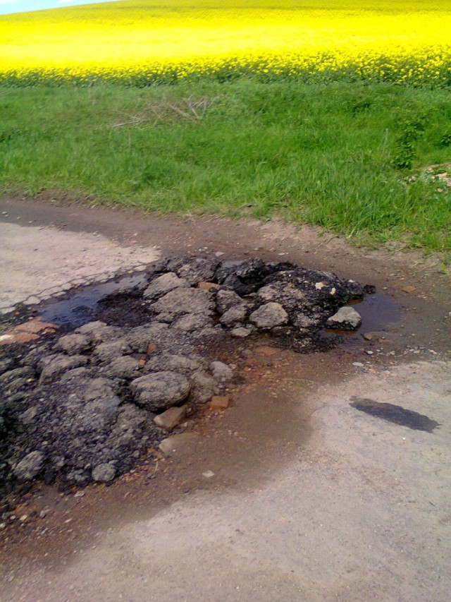 «Проїжджаючи через с. Новий Зборишів Горохівського р-ну, можна звернути увагу на «якісно» і «професійно» полагоджену дорогу. Р/s.Так і машину поламати можна…».