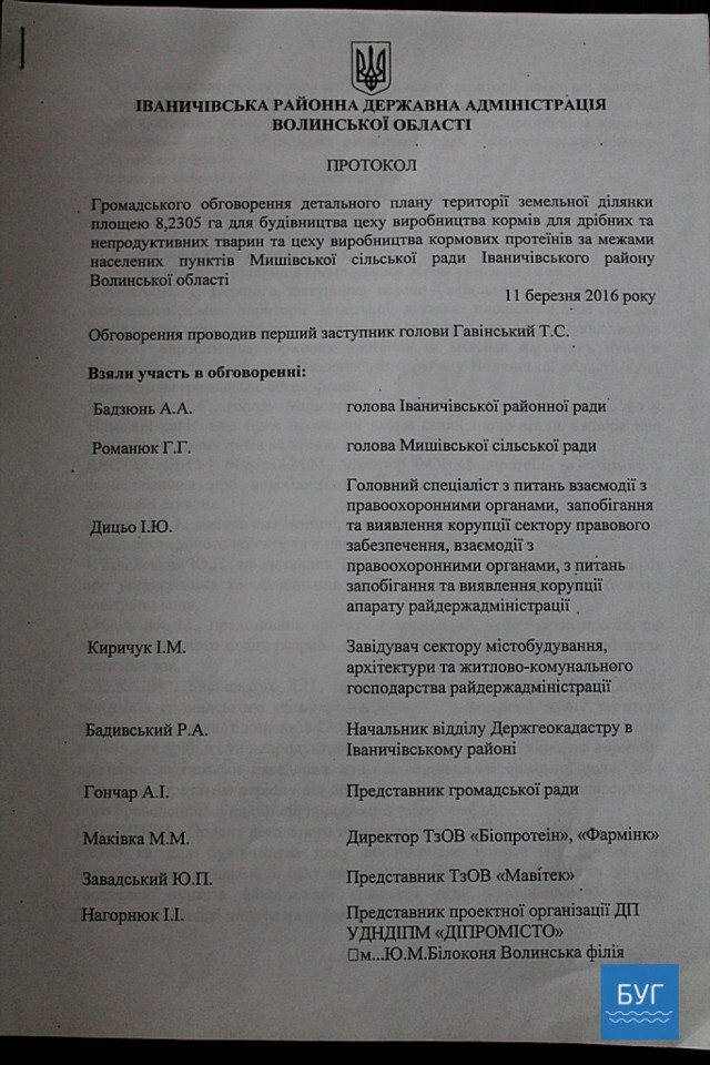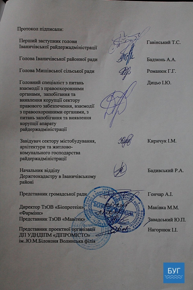 За результатами земельних торгів 18 червня 2018 року був заключений договір оренди земель державної власності на території Іваничівського району в особі першого заступника начальника головного управління держгеокадастру у Волинській області Анатолія Полякова та ТзОВ «Біопротеїн» в особі директора Миколи Маківки.