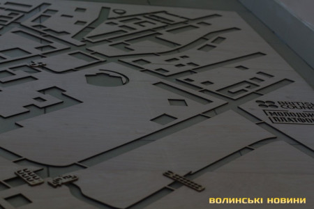 Пробний варіант проекту «Світло-тіньова мапа Луцька», виконаний із дерева, його автори Марія Назарчук і Дмитро Авраменко презентували 10 серпня у приміщенні Центру туристичної інформації та послуг.