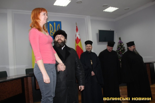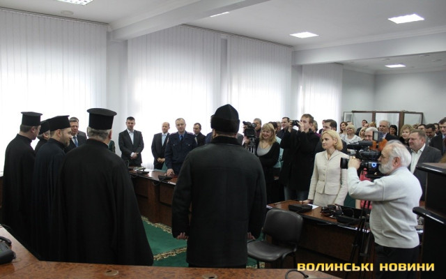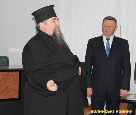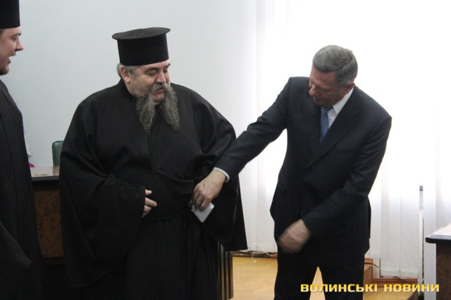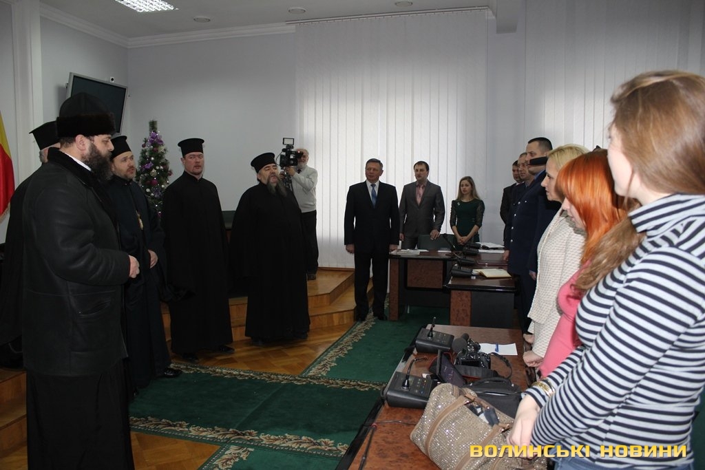 Митрополит Луцький і Волинський Михаїл УПЦ КП, разом з іншими духовними отцями, прийшов щедрувати і співати релігійні пісні у Луцьку міську раду.