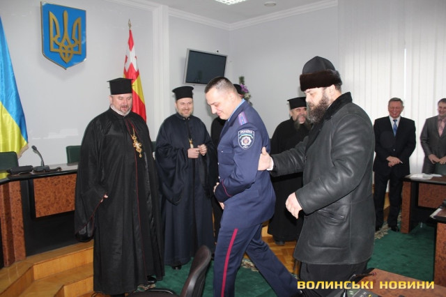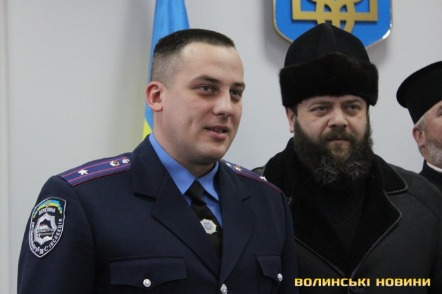 Закликав владика Михаїл і правоохоронця віншувати людей, але той не погодився одразу. Втім, страж порядку все ж побажав усім щастя, здоров’я і процвітання.