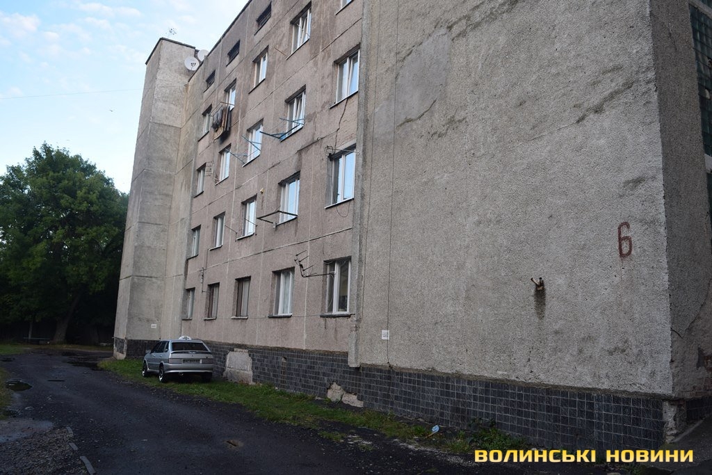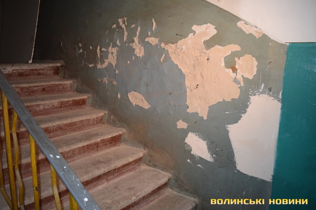 Двоповерховий гуртожиток, що на вулиці Стрілецька, 15, довгі роки слугує житлом для восьми сімей. Знаходиться будівля практично поблизу центра Луцька. Здалеку, з вигляду на фасад, не дуже помітно, в якому аварійному стані вона перебуває. Нещодавно частина старезної віконної шибки цього будинку впала на тротуар прямісінько перед пішоходом. Дивом вдалося уникнути летального випадку. Один із шматків розбитого скла й досі можна побачити ще на «козирку».