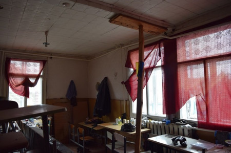 Проте навіть не жахливі умови розміщення змусили батьків бити на сполох. Основною причиною стало руйнування старого одноповерхового корпусу. Позаду будівлі на стіні – наскрізна тріщина, яка постійно збільшується. Усередині в одному з класів, нині закритому, опорою для стелі служить дерев’яна палиця.