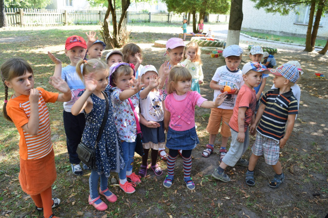 ...На подвір’ї садочка – гамірно. Одні малюки, взявшись за руки, водять хоровод і співають «А сорочка вишита – біла-біла»... Менші бавляться іграшками. Діти підбігають до нас. Вони такі щирі та безпосередні у своїх емоціях.
