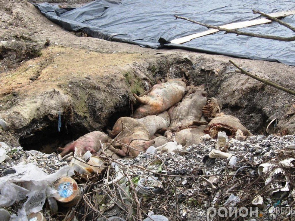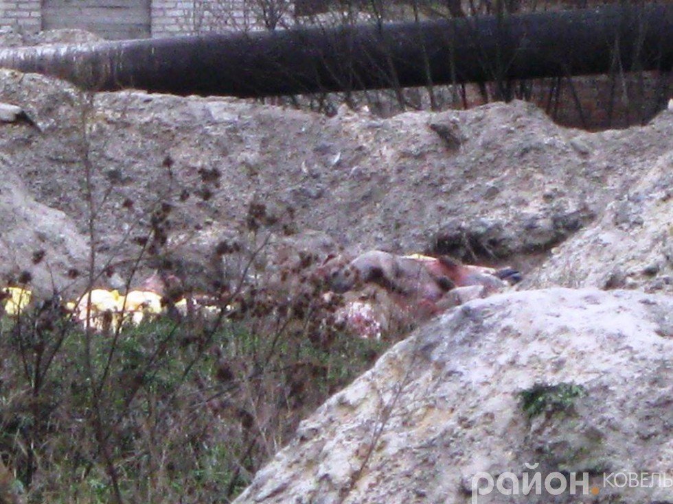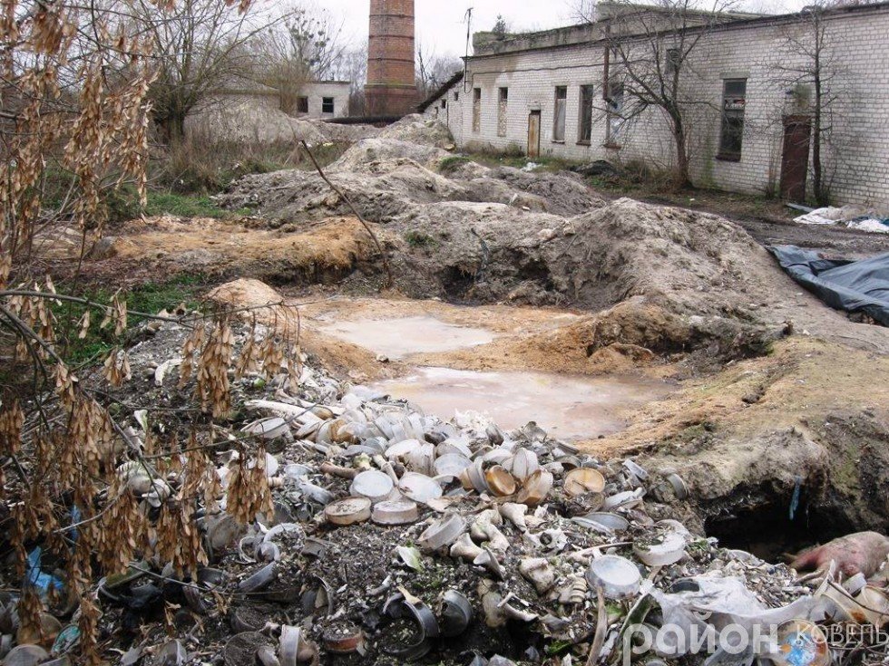 Приголомшуючу картину зафіксували журналісти на території Ковельської філії державного підприємства «Укрветсанзавод». Тут падаль просто скидають у викопану яму, абсолютно не думаючи про наслідки для навколишнього природного середовища.
