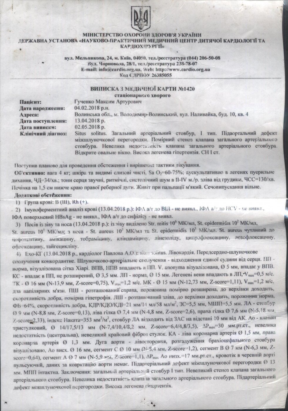 Маленькому Максимку Гученко з Володимира-Волинського поставили невтішний діагноз – вроджену ваду серця.