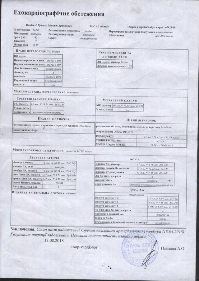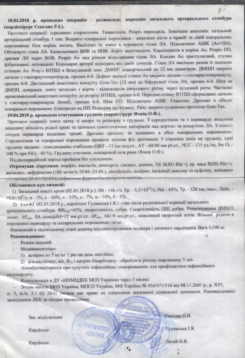18 квітня хлопчик переніс першу операцію, яку зробили у Киїському Охматдиті. Її провели безкоштовно, а на лікування батьки витратили близько 95 000 тисяч гривень.