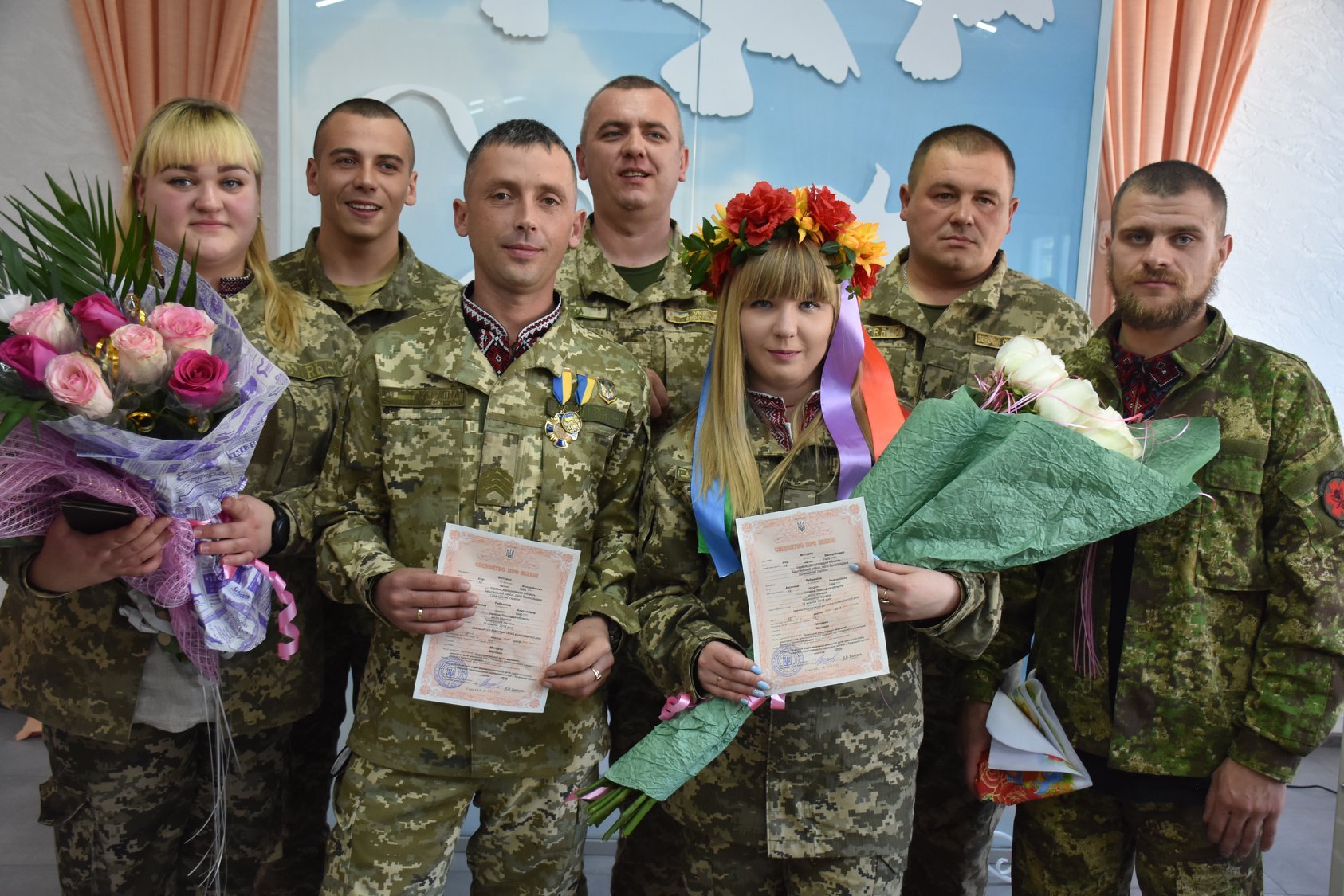 Як повідомляють на сторінці бригади, “як і на справжньому весіллі, були квіти, обручки, щирі вітання від найближчих друзів і побратимів, щасливі посмішки, і перший поцілунок молодих у якості подружжя. А от без весільного бенкету обійшлося, бо одразу після церемонії одруження молодята повернулися до виконання своїх службових обов’язків”.
