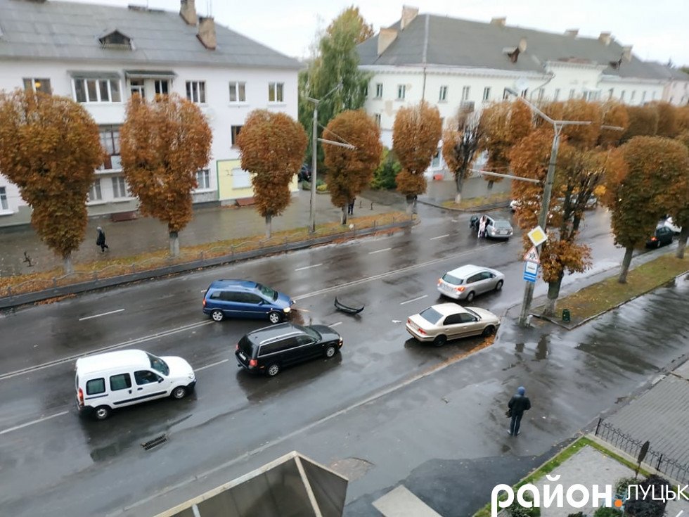 У Луцьку через зіткнення 4 автомобілів на проспекті Перемоги утворилася величезна «тягучка». Рух сповільнений, бо транспортні засоби перегородили половину дороги.