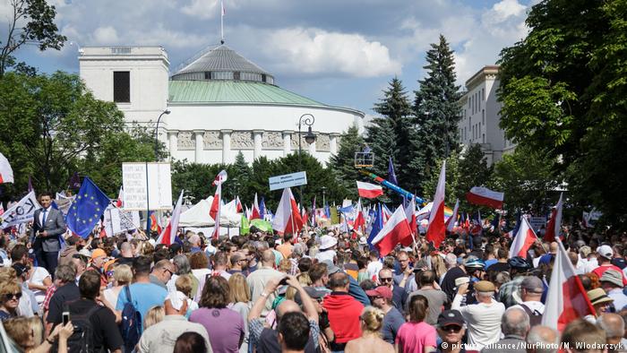 У найбільших містах Польщі в неділю, 16 липня, тисячі людей вийшли на акції протесту проти судової реформи. В них взяли участь прибічники опозиції різних ідеологічних спрямувань.
