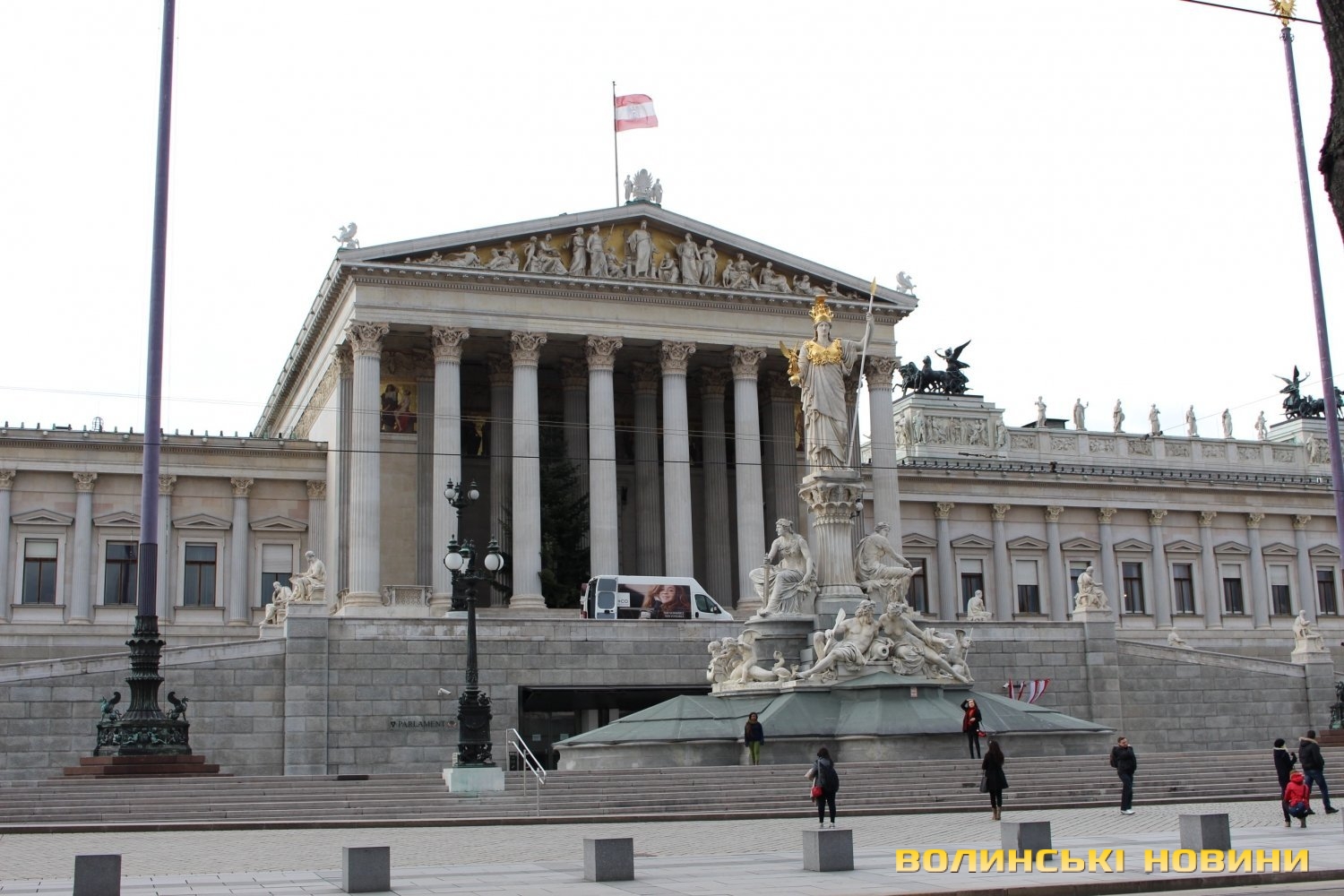В стилі неогрек або грецького відродження збудована будівля австрійського Парламенту – містить 100 кімнат і займає площупонад 13 500 м².