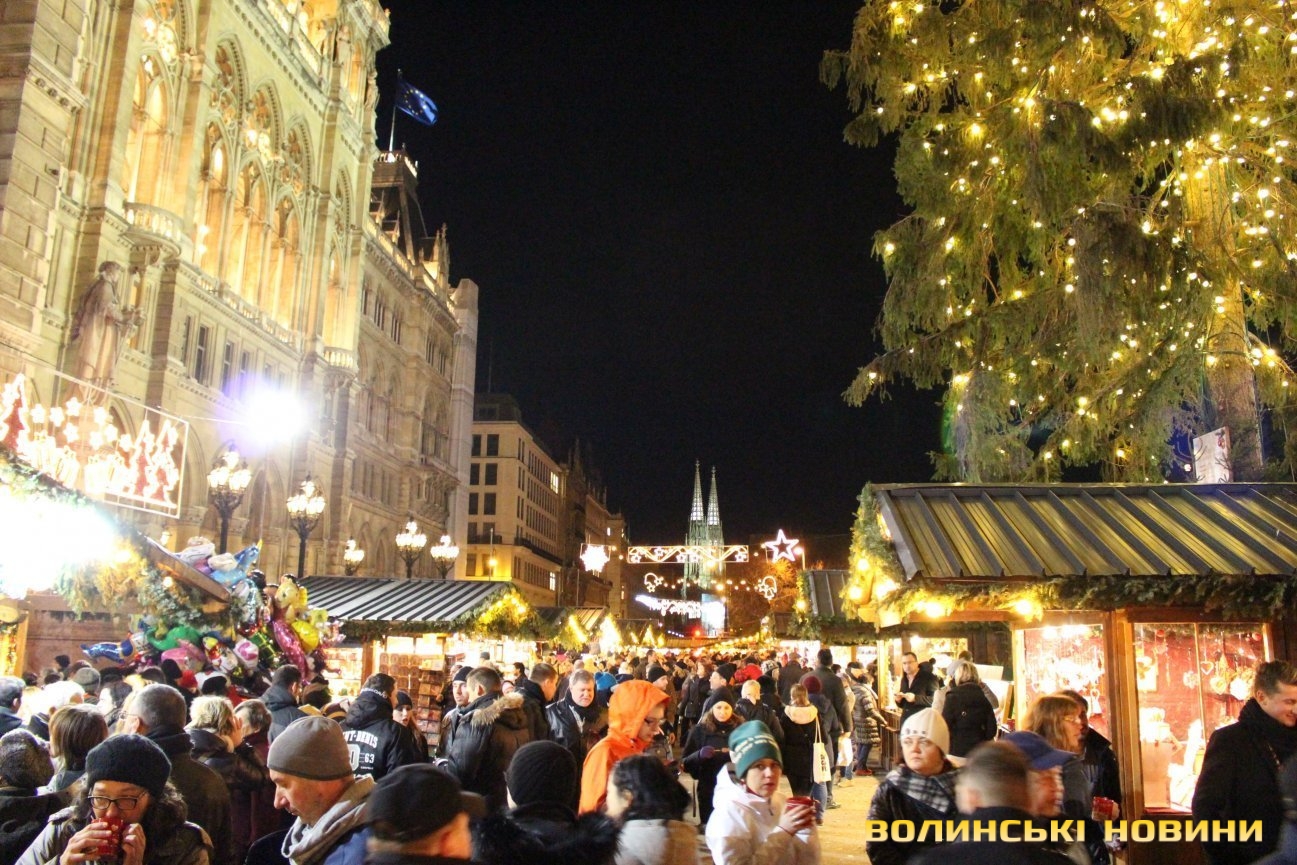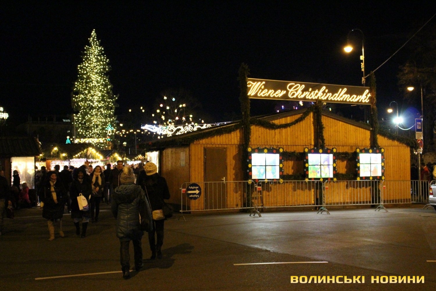 Центральна площа міста – площа перед Віденською ратушою – Ратхаусом та площі перед палацами ще з середини листопада перетворюються на різдвяні ярмарки – Крісткіндлмаркти, на які віденці та гості міста приходять родинами – попити глінтвейну чи пуншу (до речі, в них він багатьох видів – традиційний апельсиновий, а ще вишневий, лимонний, виноградний, яєчний або ж із суміші багатьох фруктів), з’їсти якогось смаколика типу смажених каштанів чи тоненьких скибок печеної картоплі і поспілкуватися. А заодно і придбати якусь різдвяну дрібничку у дім – яток із ними на таких ярмарках безліч. Як сувенір на пам’ять про похід на Крісткіндлмаркт гість може залишити собі кружку, в яку йому наливали напій – за неї він, навіть якщо про те не знає, платить 2,50€. Наприклад, якщо сам глінтвейн чи пунш коштує 3,50€, то до оплати буде 6,00€, бо решту різдвяні торгівці беруть за кружку – яку потім можна повернути і отримати назад свої гроші, отже напій справді коштує 3,50€ – все по-чесному. Інша справа, що повертати кружку зазвичай не хочеться – ми, наприклад, залишили їх собі.