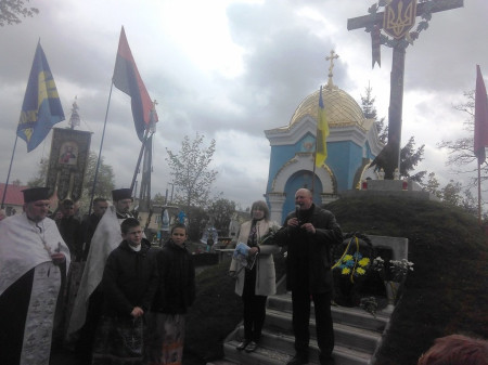 «Коли війна постукала у двері, ці герої не запитували прізвищ і національності окупантів. Вони брали до рук зброю і ціною власного життя боронили свою землю, свої родини і свої домівки від усіх зайд, які на наше зазіхали. Наша з вами пам'ять про них – це вірність їх ідеї. Вірність Україні та героям України, які хотіли її бачити вільною і незалежною, такою, в якій нащадки пам’ятають і шанують своїх героїв. І ми нікому не дозволимо паплюжити наших Героїв!» – зауважив у своєму виступі заступник голови Волинської «Свободи», перший заступник голови Волинської обласної ради Олександр Пирожик.