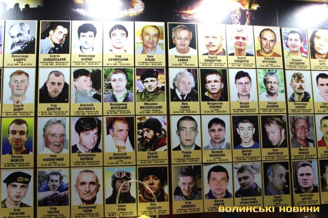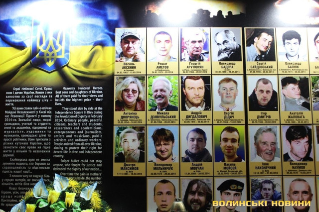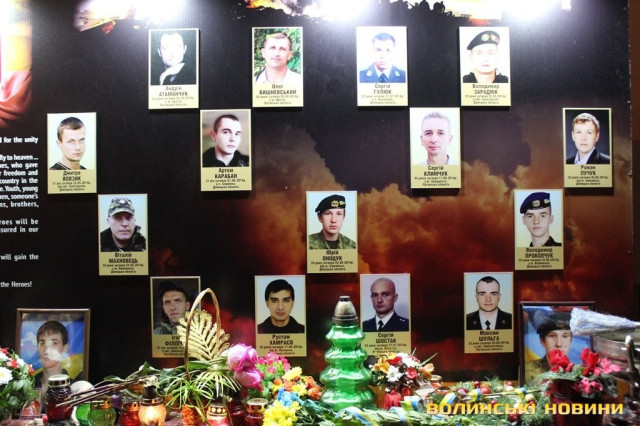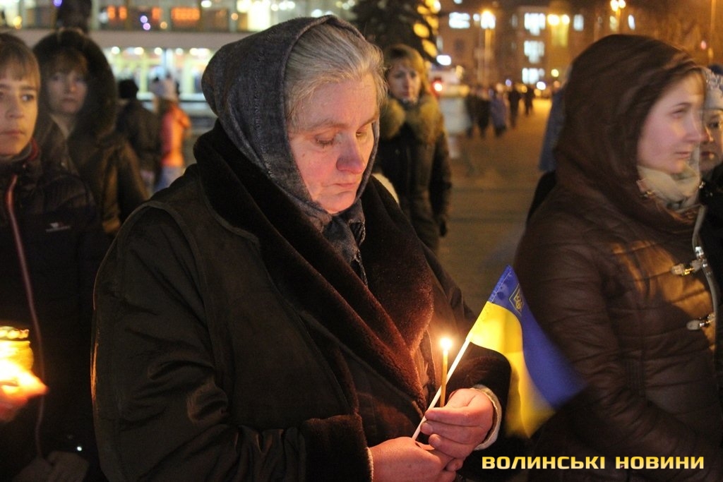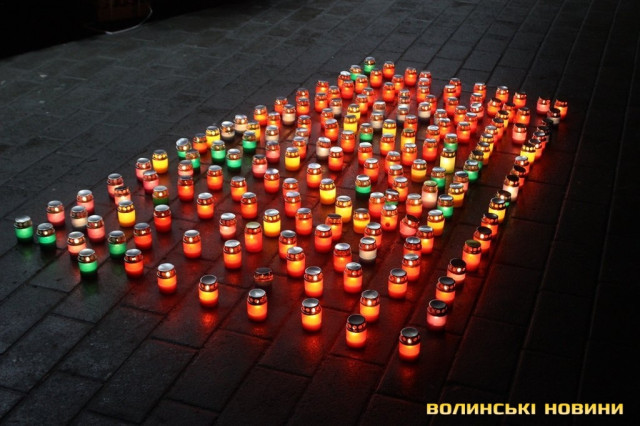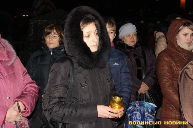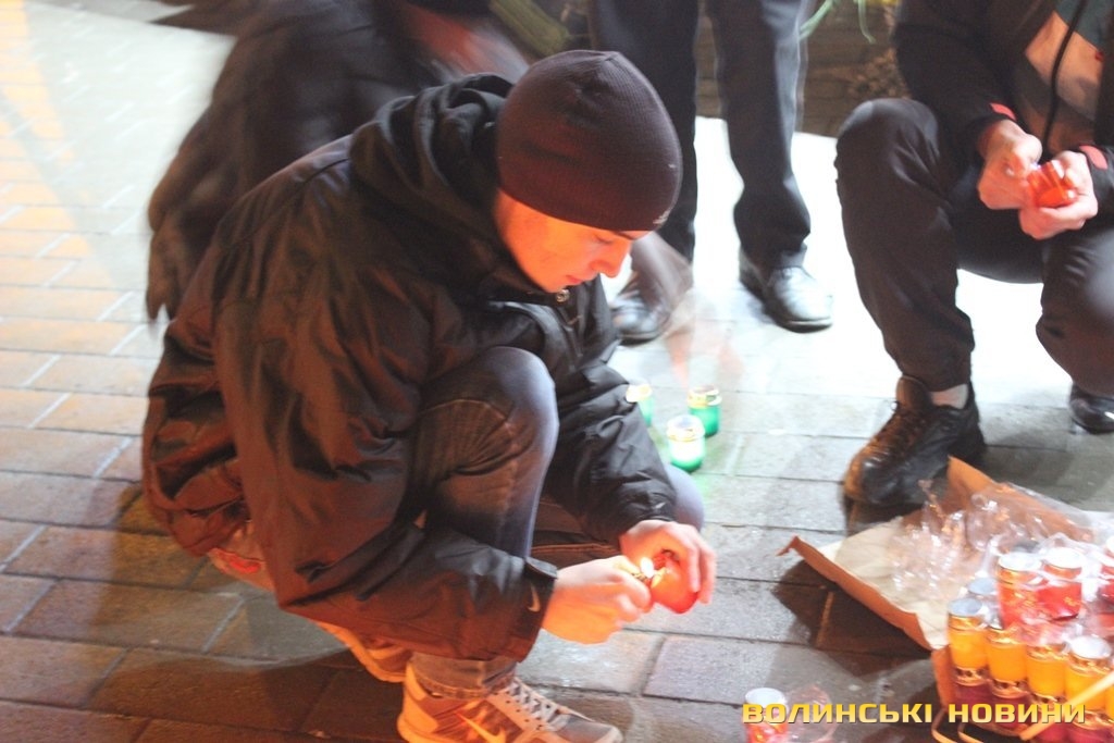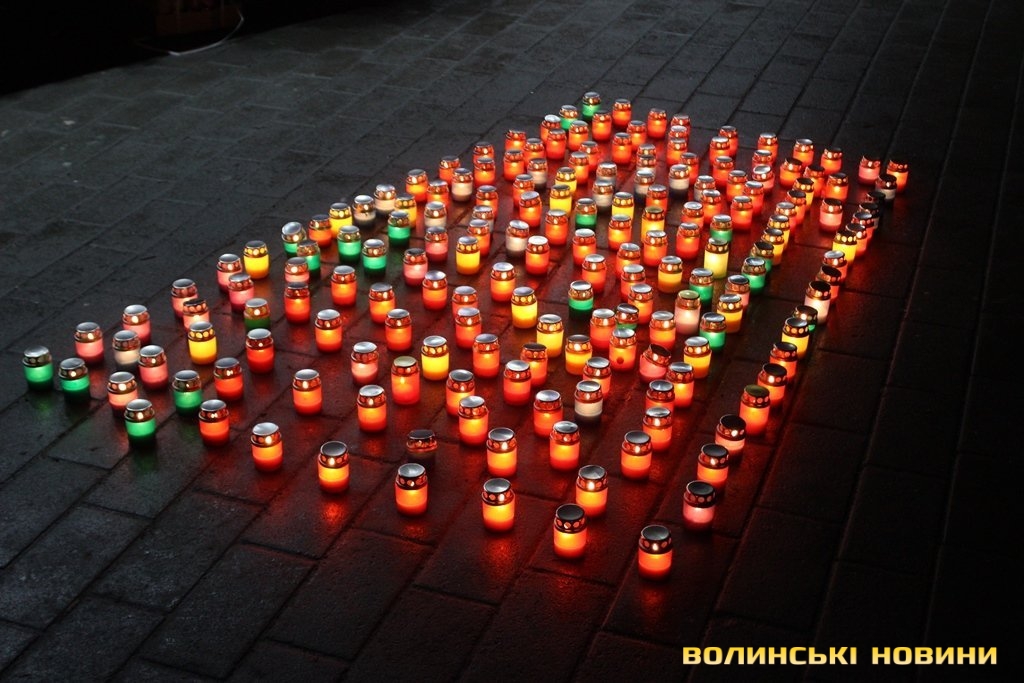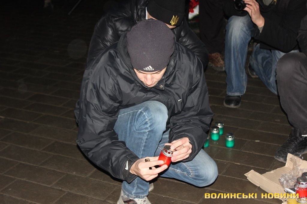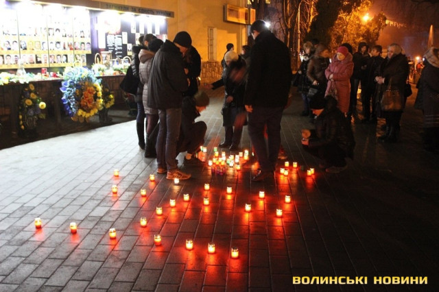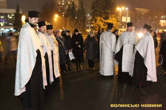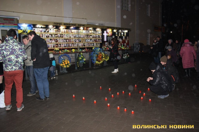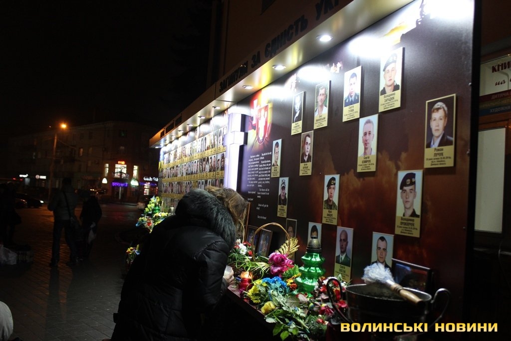 Панахиду за загиблими українськими воїнами відслужили на головній площі Волині. Аби вшанували героїв, біля пам’ятної стели «Небесної Сотні» запалили лампадки.