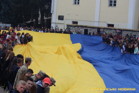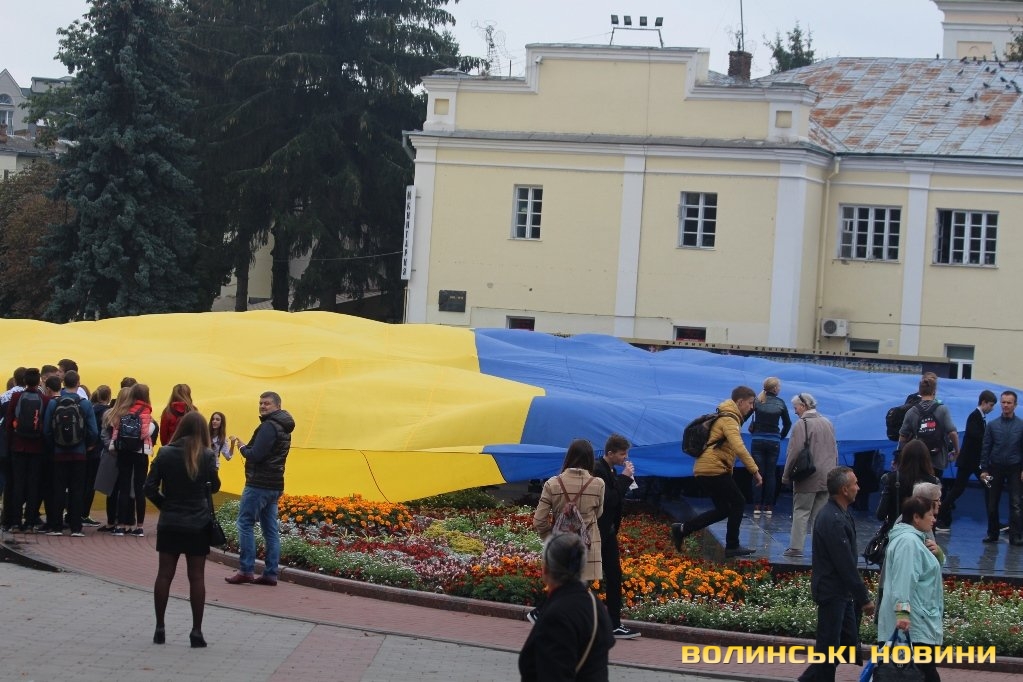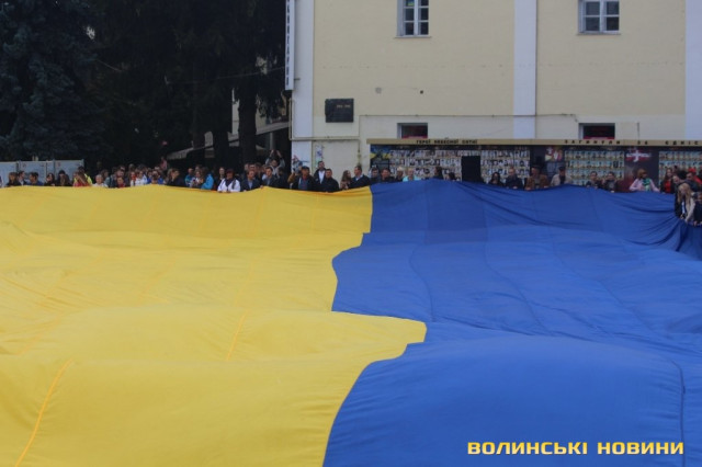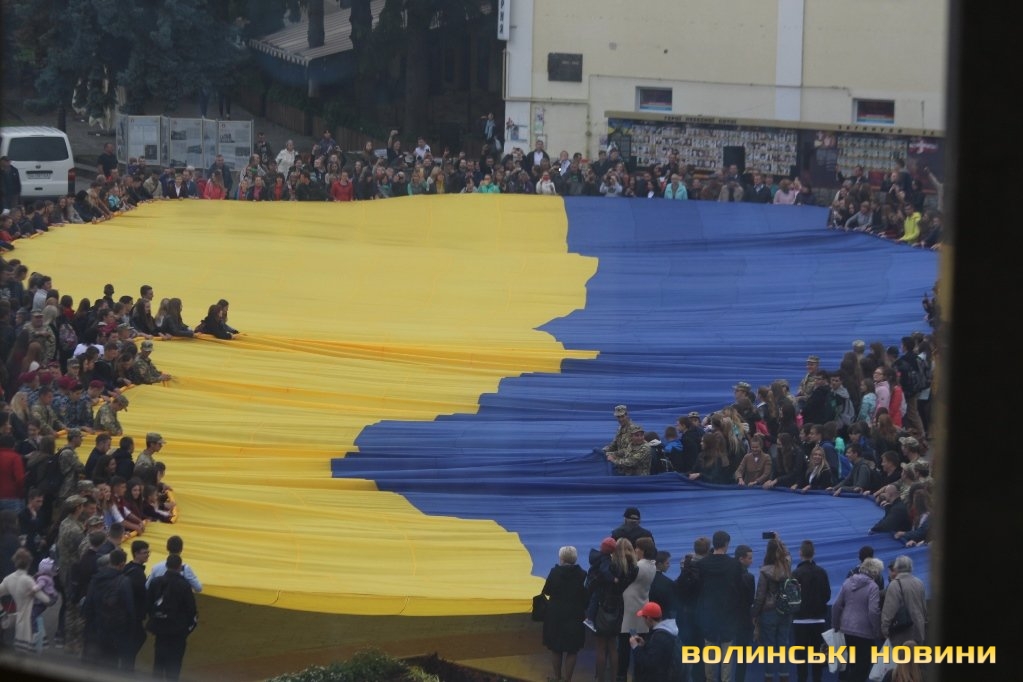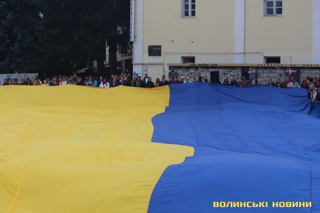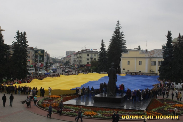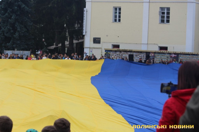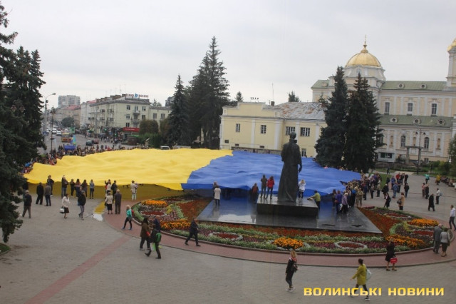 Найбільший прапор України, який завдяки своїм розмірам увійшов до Книги рекордів Гіннеса, розгорнули у центрі Луцька.
