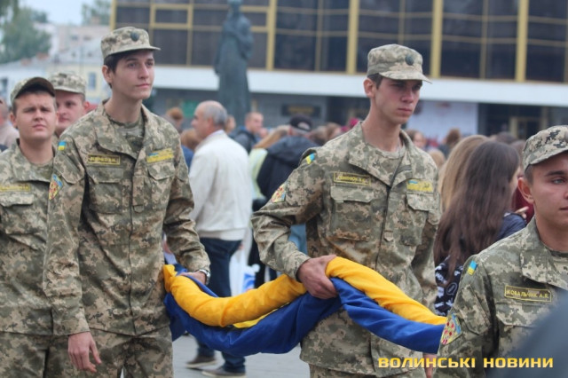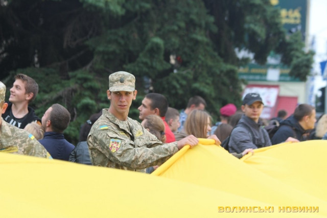 Нагадаємо, цю акцію започаткували 2 травня 2014 році у Львові. У Луцьку перше розгортання прапора відбулося на Замковій площі.