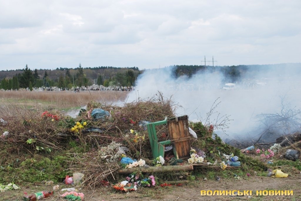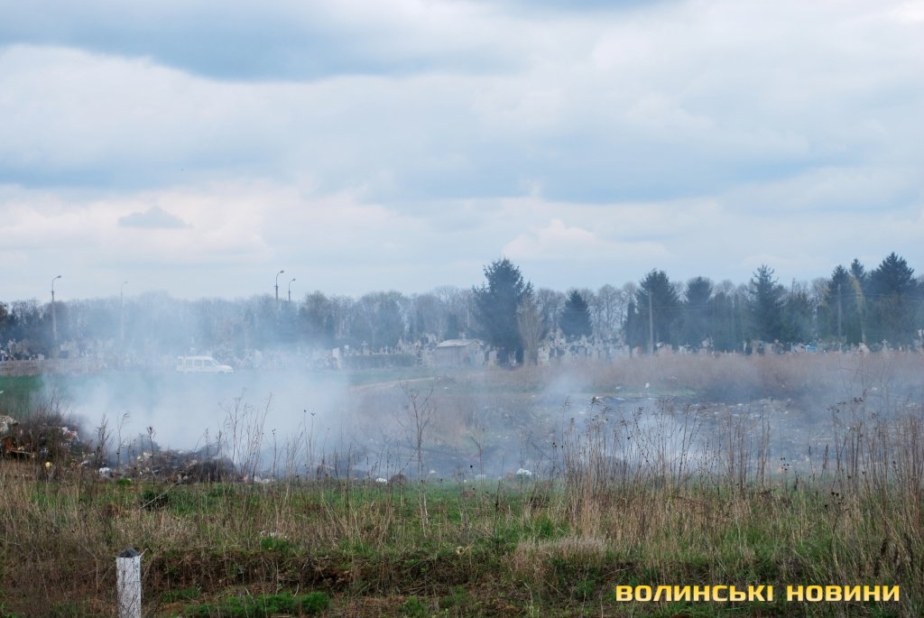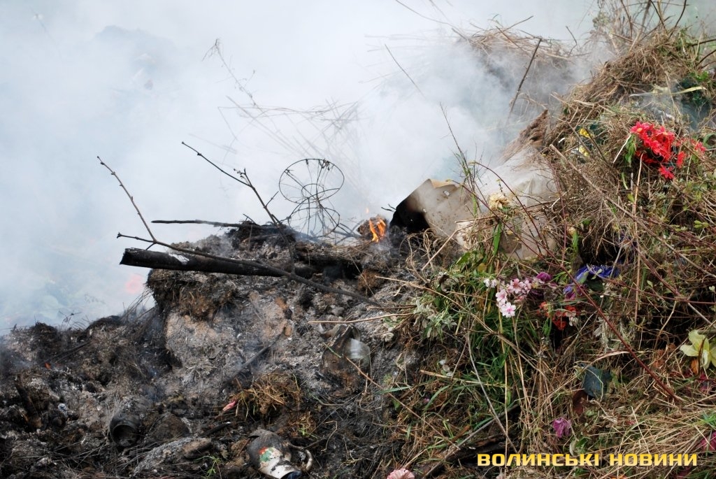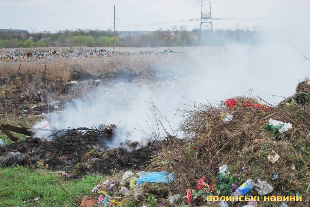 Втім, як виявилося, керівництво Луцького спеціалізованого комбінату комунально-побутового обслуговування, який займається утриманням цвинтаря, нічого не знає про це та навіть заперечує факт спалення сміття.