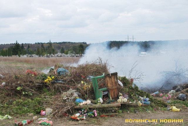 Це викликає подив, адже не зауважити хмари їдкого диму над цвинтарем та купи обгорілого сміття - неможливо.