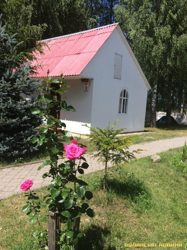 Педагог-організатор Оксана Абрамчук провела невеличку екскурсію територією закладу. Серед різноманіття трав, кущів та дерев розмістилися будиночки оригінальної архітектурної форми, у яких проживають самі дітки та персонал. Будиночки поєднують охайні доріжки.