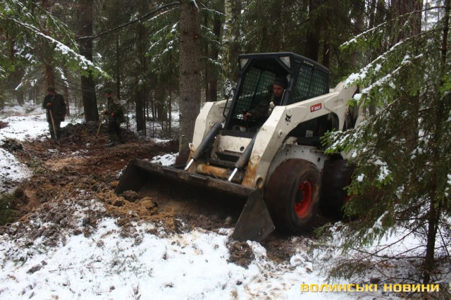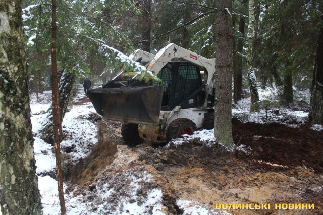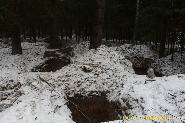 За Лісовим знаходиться перший блок-пост силовиків. Проте, якщо не проїжджати його, а повернути ліворуч в поле та пройти лісом близько 100 метрів можна побачити перші ями.25 грудня, в день, коли християни західного обряду святкують Різдво Христове, тут гуде екскаватор і грюкають лопати. Лісівники кажуть, що приїхали закопувати ями, які з’явились тут відносно недавно.