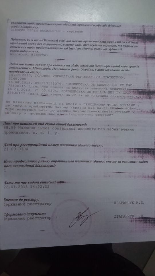“Фонд “Час милосердя” поставив відра(!!!)… Організація зареєстрована в місті Коломия. Всі документи, що є, то виписка і якась невідома справка…”, – написав на своїй сторінці активіст.
