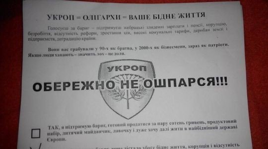 У Луцьку вночі напередодні виборів розповсюдили контрагітки проти УКРОПу – «УКРОП – обережно не ошпарся!».