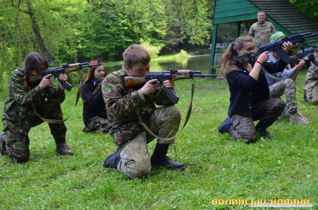 На фото: вишкіл молоді у військово-патріотичному таборі поблизу Луцька на травневі свята