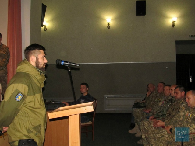 Після завершенння урочистостей з привітальними словами виступив Іван Омельчук, голова спілки ветеранів Афганістану. На завершення молодий боєць ДУК «Правий сектор» з позивним Апостол прочитав присутнім власний вірш.