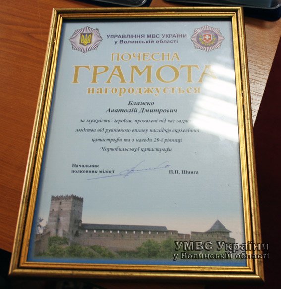 Відзнаки та грамоти чорнобильцям вручив начальник обласного управління міліції Петро Шпига. Про це повідомили у прес-службі СЗГ УМВС України у Волинській області.