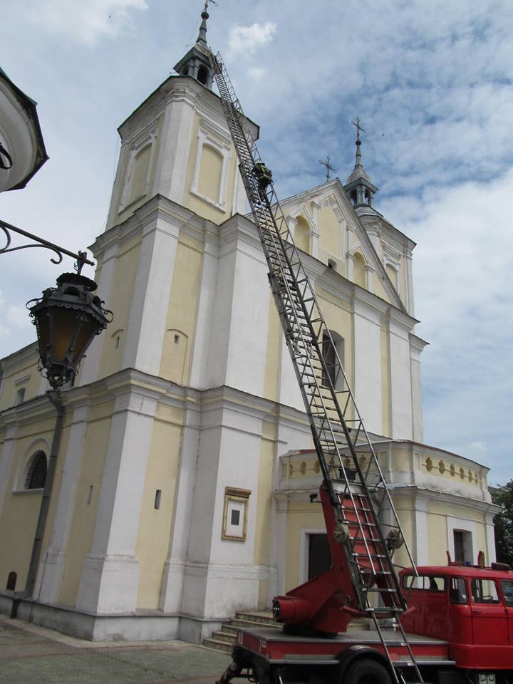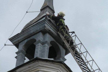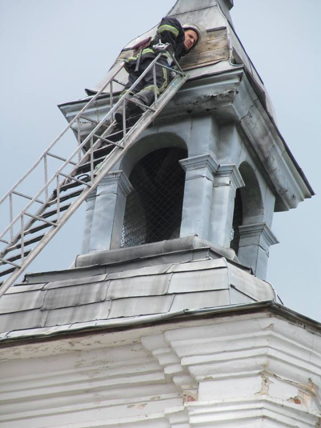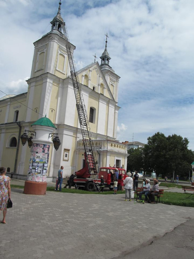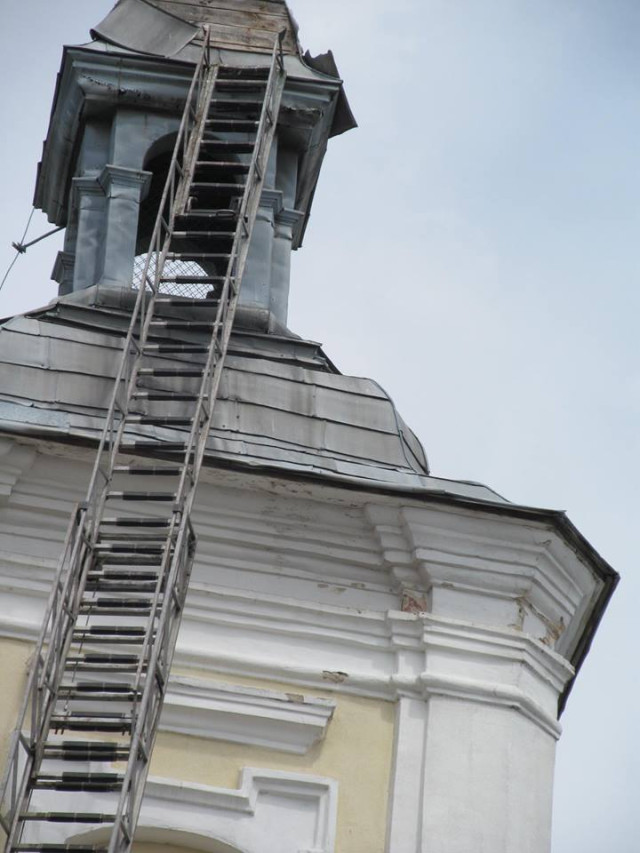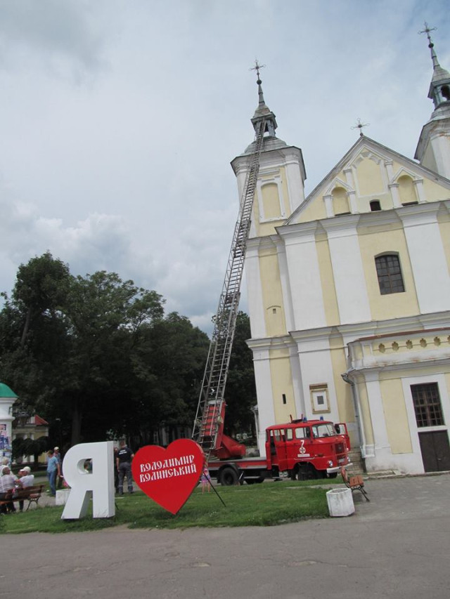 “Життя древнього міста. Одна мить історії. Пошкоджену внаслідок негоди покрівлю однієї з веж костелу святих Якима та Ганни відремонтував спеціаліст рятувальної служби у Володимир – Волинському Юрій Васько. Висота вежі понад двадцять метрів. Спеціальний автомобіль з драбиною надано місцевим відділенням рятувальної служби. Костел св.Якима та Ганни – памятка архітекутури національного значення 18 століття”, – написав у фейсбуці Володимир Стемковський.