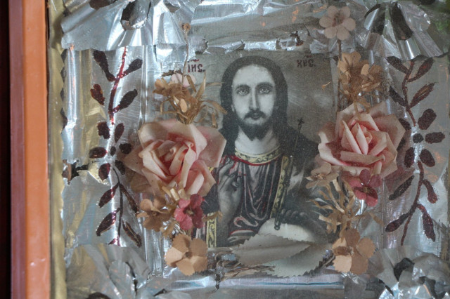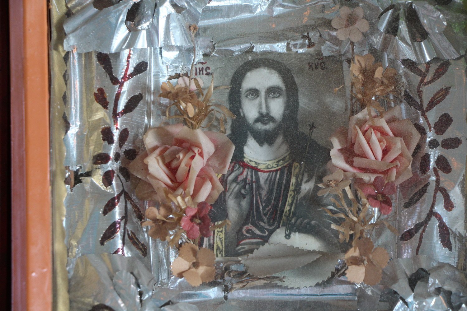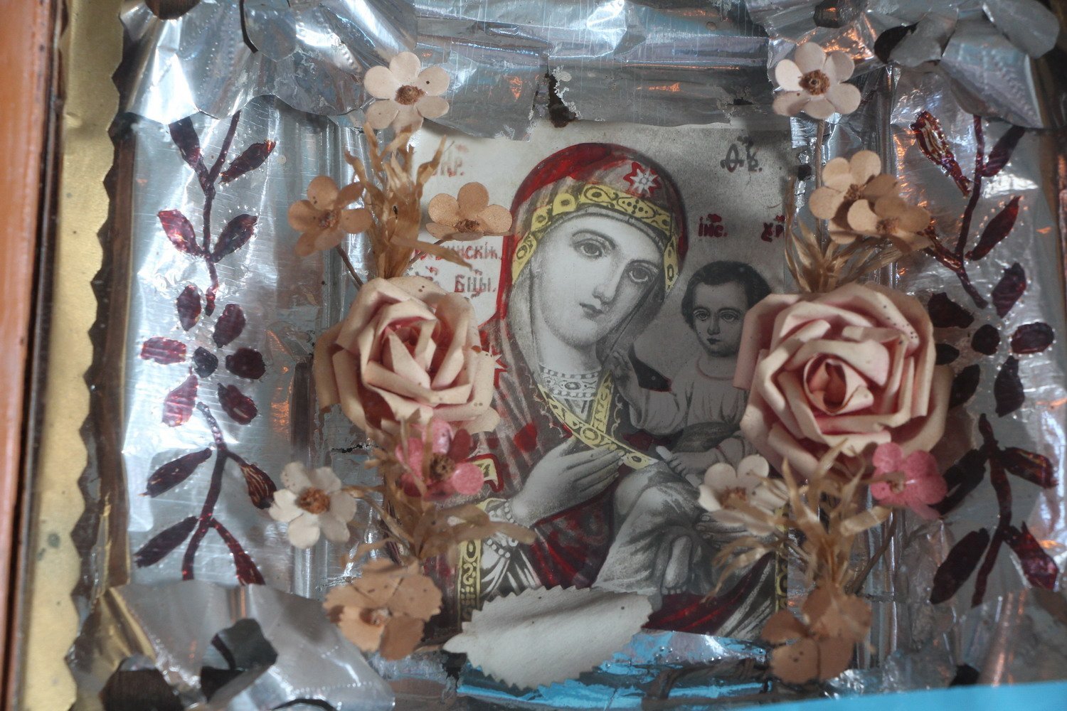 Лики Ісуса Христа і Діви Марії у домі Віри Войтюк відновлюються зараз. А от образи Спасителя та Богородиці з Дитятком відновилися в оселі Олександри Гевель приблизно десять років тому, але про це стало відомо відносно недавно.