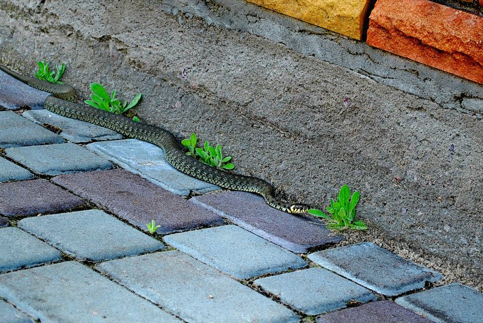 Біля озера будинок де живуть родичі, на подвірі за день три рази хустрічали вужика, родичі вже звикли, ніякої реакції....