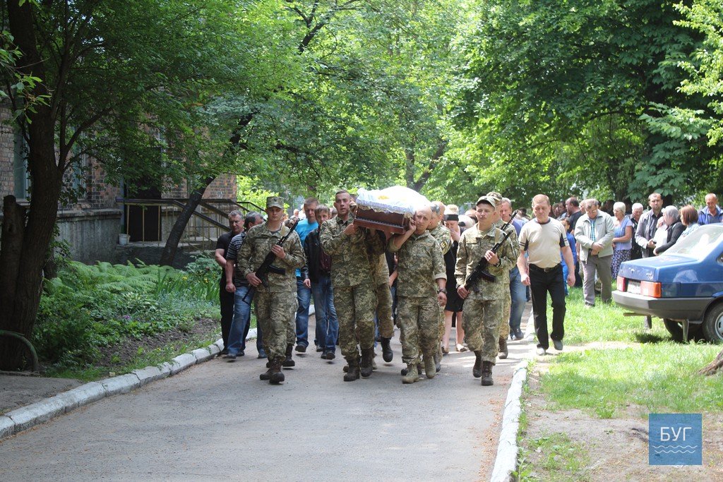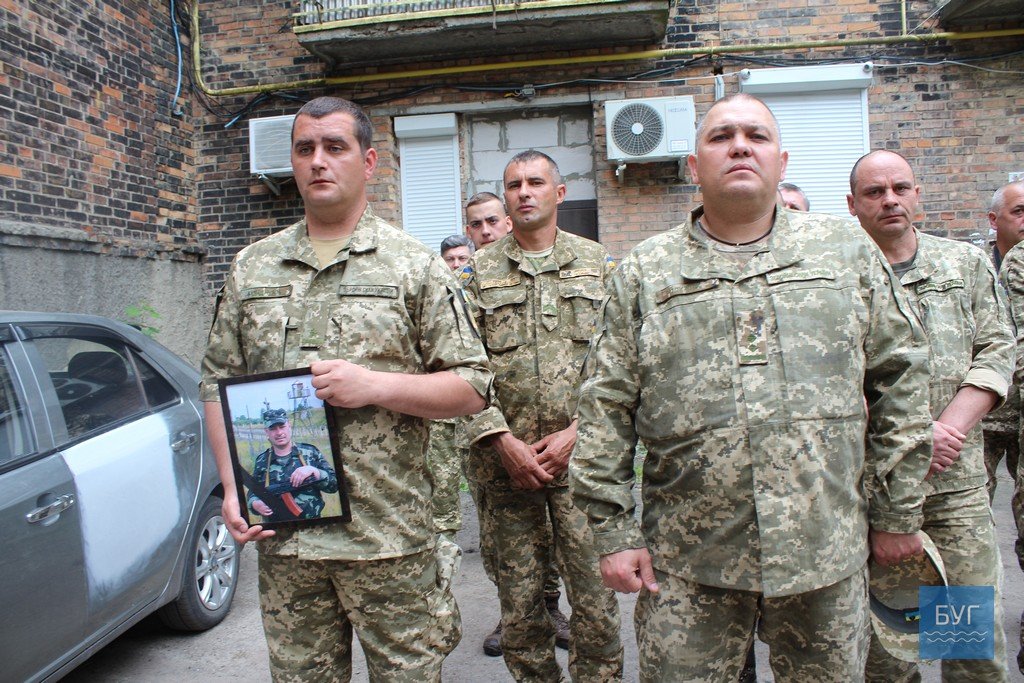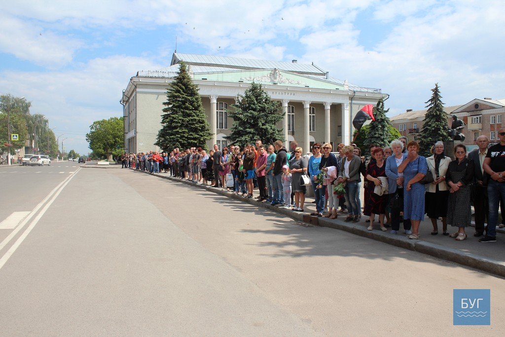 Прощання із загиблим бійцем розпочалося біля будинку, куди прийшли родичі, близькі, друзі, бойові побратими, представники військкомату та міської влади, інші небайдужі мешканці, передає БУГ.
