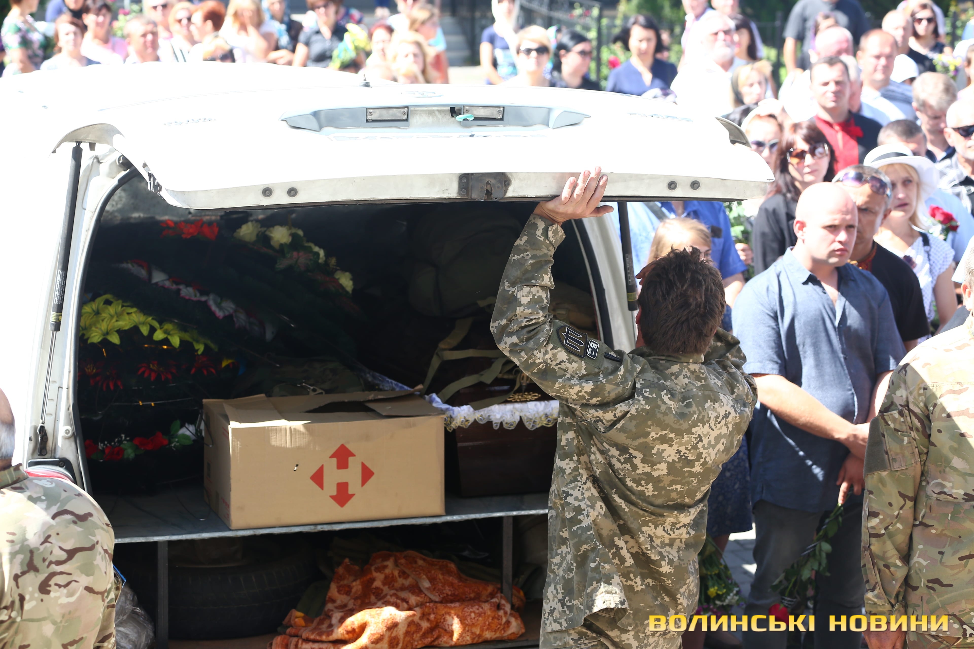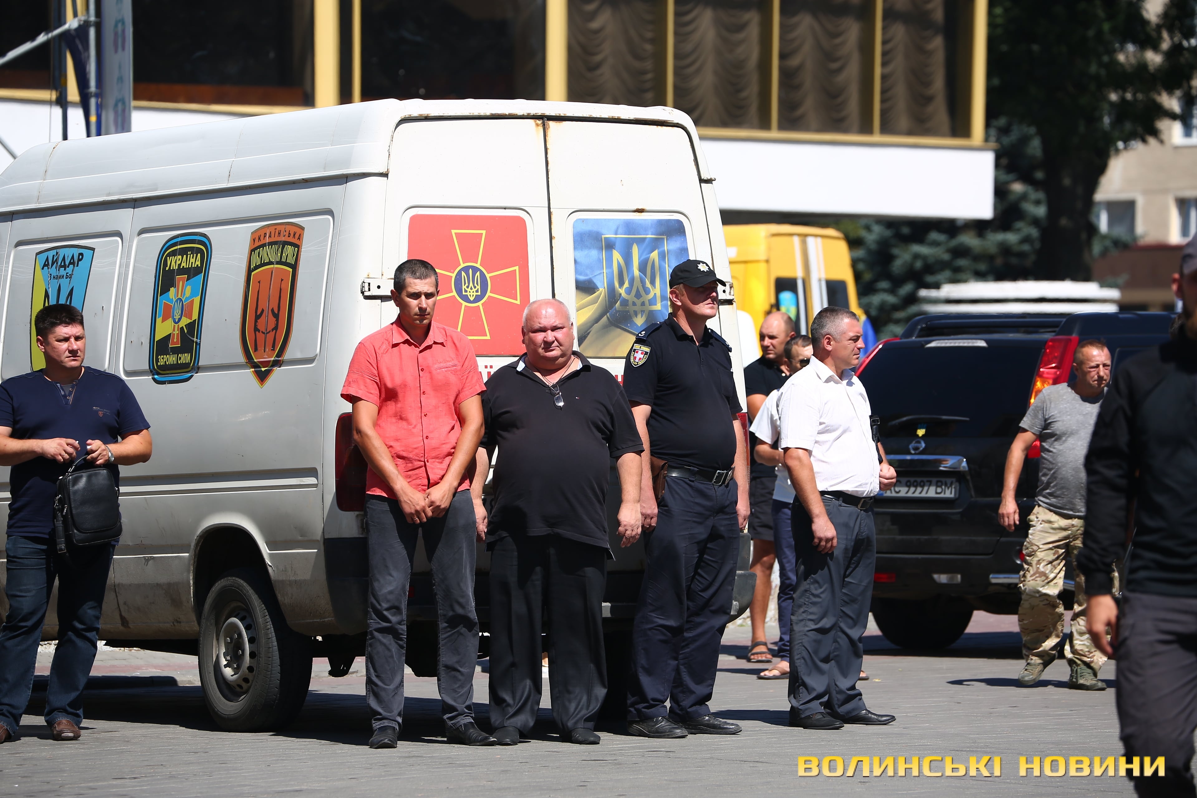 Попередньо загиблих зустріли біля Цуманського посту та в супроводі колони з автомобілів доправили до Луцька, на Театральний майдан. Багато містян дорогою зі сльозами на очах віддавали шану бійцям.Після завершення панахиди відбудеться прощання з Андрієм Єлістратовим. Військовослужбовця поховають на міському кладовищі у селі Гаразджа на Алеї почесних поховань.26-річний військовослужбовець із Луцька, старший розвідник 14-ї ОМБ Андрій Єлістратов загинув на Луганщині, поблизу Попасної, у автомобілі, який із Волині привезли волонтери. В авто 8 серпня з протитанкової ракети влучили сепаратисти, в результаті чого юнак отримав травми не сумісні з життям.
