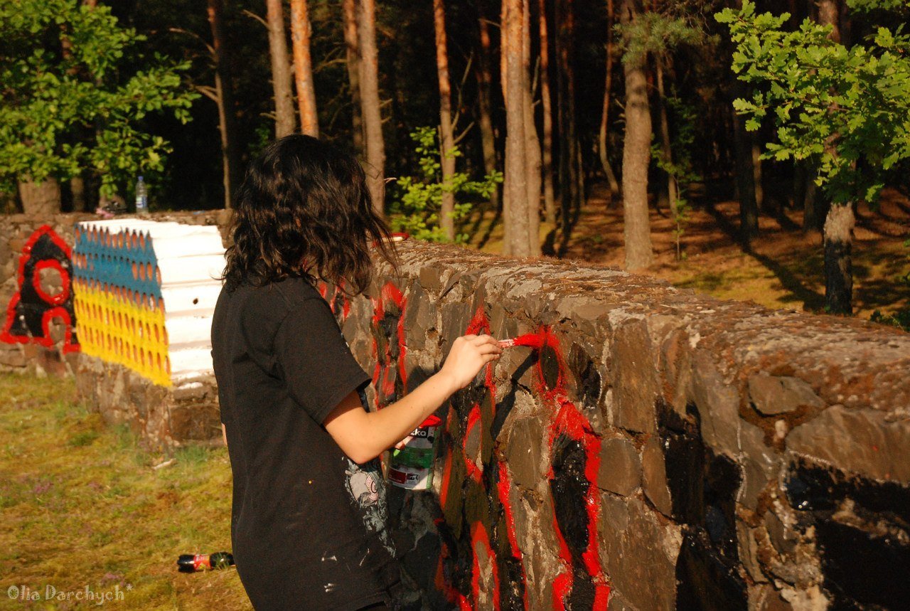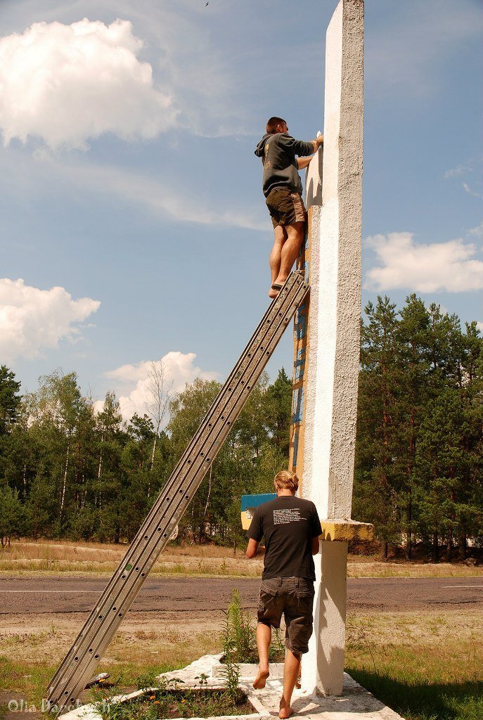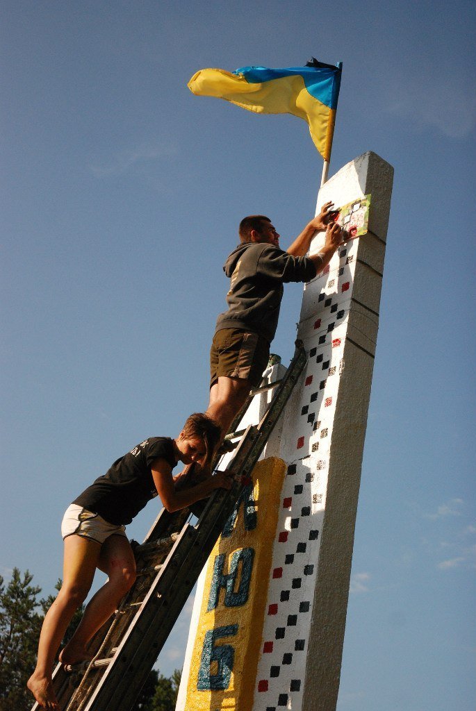 "Нам пощастило знайти досить активного підприємця Полішука О.В., який розділив наші патріотичні погляди та виділив кошти на купівлю фарби", - розповідає член громадської організації "Майдан" Оля Дарчич.