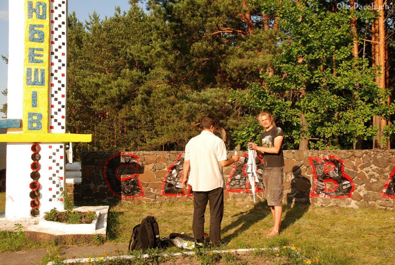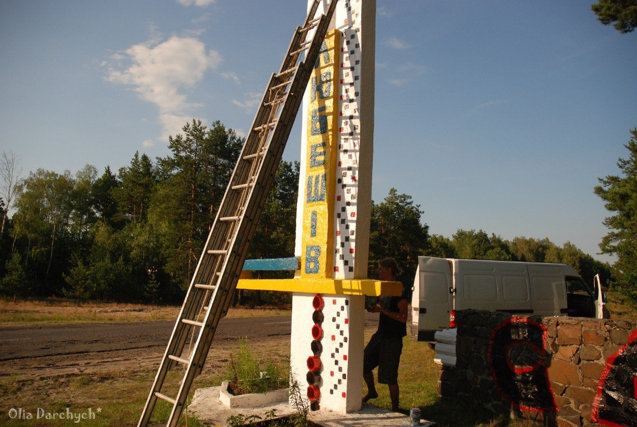 Працювали над втіленням ідеї в життя громадські активісти Василь Корець, Олексій Приходько, Оля Дарчич. Окрім того, до акції долучилася небайдужа молодь. Зокрема, допомогли розфарбувати в'їзний знак Леонід Фесик, Олександр Матюк, Ірина Сащук.