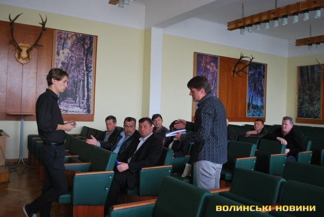 Громадські активісти зібралися на установчі збори в актовій залі управління лісового та мисливського господарства у Волинській області сьогодні, 29-го квітня.