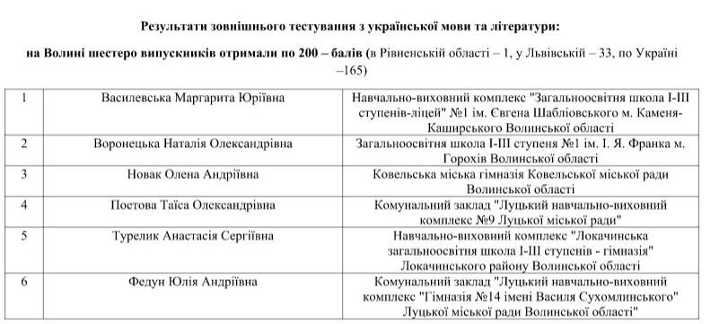 Приємно, що шестеро волинян отримали максимально високий результат – 200 балів.