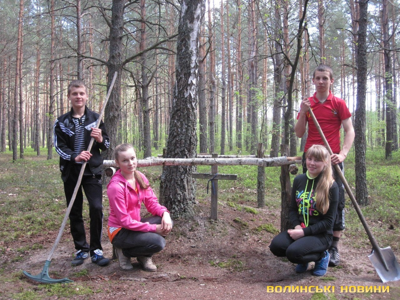До Дня Перемоги учні 8 класу Мельниківської загальноосвітньої школи, що у Камінь-Каширському районі разом з учителем історії Романом Березнюком впорядкували могилу польської сім’ї часів Другої світової війни.