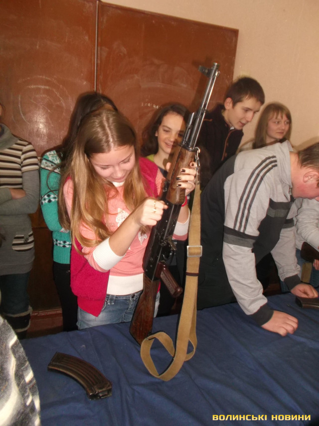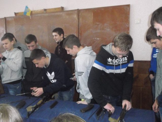 Активісти провели практичні заняття із ознайомлення старшокласників з найпоширенішим видом стрілецької зброї – автоматом Калашникова.