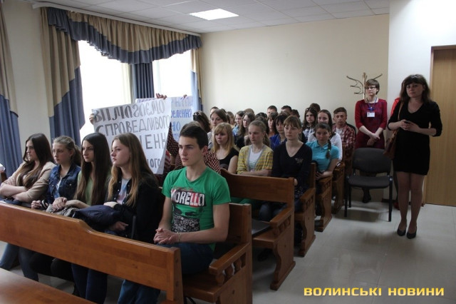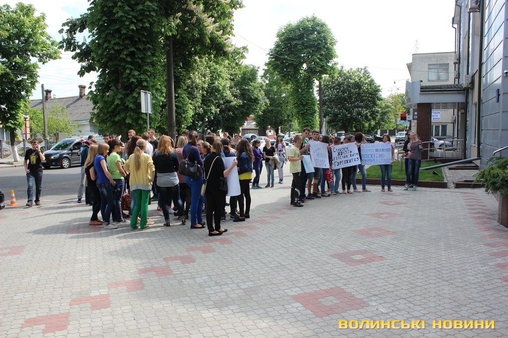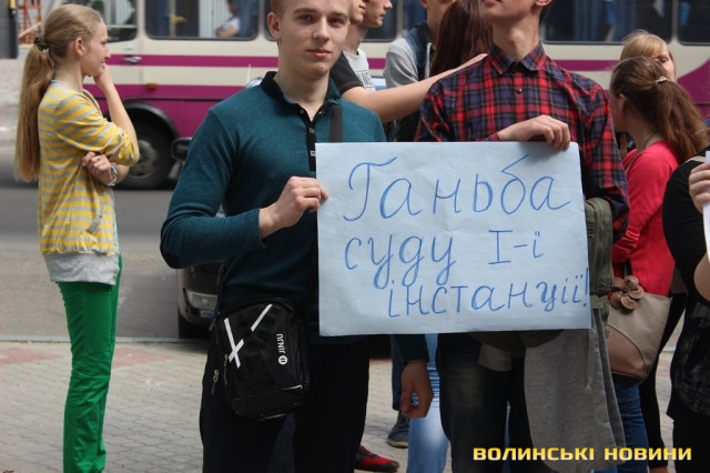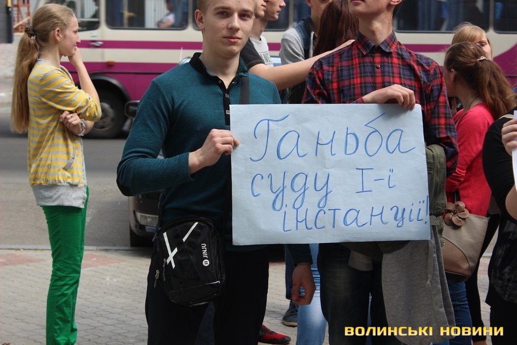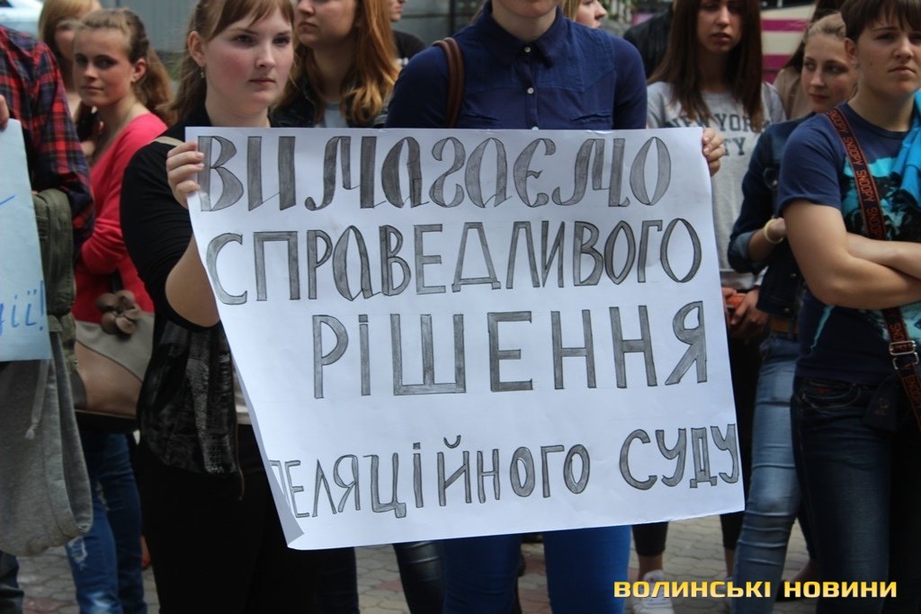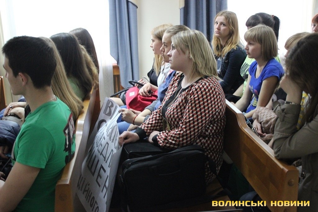 Апеляційний суд щодо примусового виселення старенької волинянки-інваліда з гуртожитку відбувся під мітинг студентів, серед яких не всі могли пояснити, чому прийшли до Феміди.