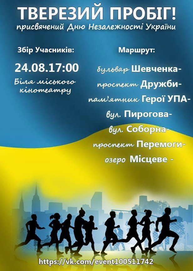 Тверезий пробіг Дня Незалежності відбудеться у Нововолинську. Про це інформують організатори в мережі.