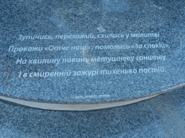 Віршовані рядки, викарбовані на постаменті, належать місцевому поету Олександру Гарбузі.