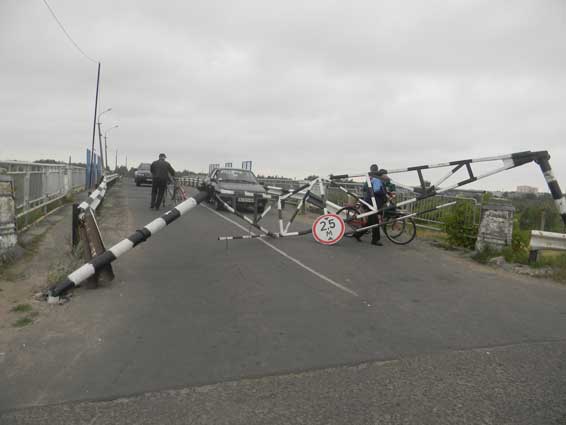 Обмежувач висоти для проїзду великогабаритного транспорту впав на проїжджу частину дороги і повністю її перегородив. Трапилося це вночі, 9 липня, на пішохідно-автомобільному мосту, що по вулиці Луцька-Незалежності у Ковелі. У результаті рух автотранспорту на деякий час був паралізований, аж поки комунальники «Добробуту» не демонтували залишки обмежувача. Про це інформує ПроКовель.